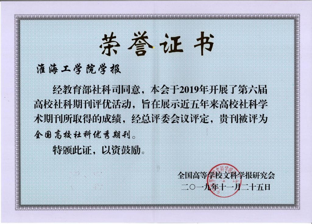 为了进一步贯彻落实党的十九大精神和习近平新时代中国特色社会主义思想,检阅办刊成绩,总结办刊经验,进一步探索期刊未来发展之路,经教育部社科司批准,全国高校文科学报举行第六届评优,历时半年的第六届评优结果于日前揭晓。我校《淮海工学院学报(人文社科版)》荣获“全国高校社科优秀期刊”,“西游记研究”栏目荣获“全国高校社科期刊特色栏目”, 原主编刘晓春同志荣获“全国高校社科期刊优秀主编”。