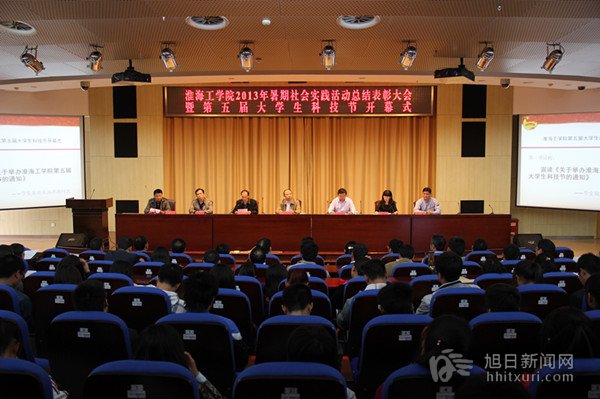 10月16日下午,我校2013年暑期社会实践活动总结表彰大会暨第五届大学生科技节开幕式在学术会议中黄海厅隆重举行,校党委书记陈明辉、副书记、副校长宁晓明出席会议,组织部、科研处、学生处、团委相关部门负责人及科技节组委会全体委员、组委会办公室全体成员和部分学生代表参加了本次会议。