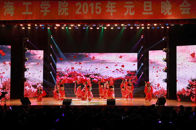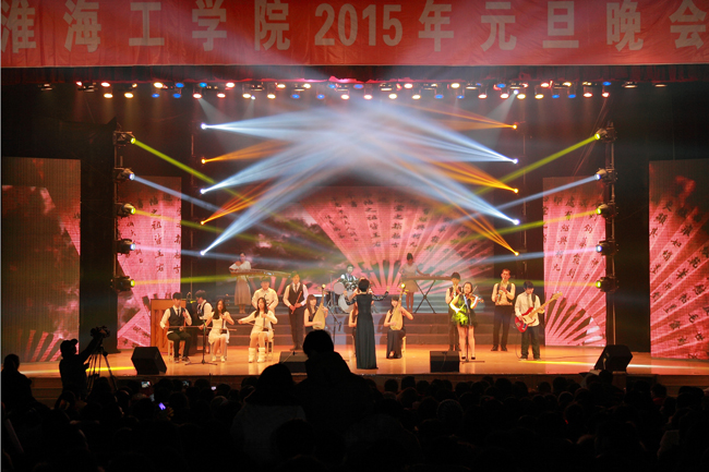 舞台上灯光四射,大屏幕上映着淮工学子的灿烂笑脸,各个学院围成方阵齐送祝福。12月24日晚上7点,我校2015年元旦晚会在大礼堂内隆重举行,校领导赵炳起、宁晓明、舒小平、王洪法出席并观看了本次晚会。