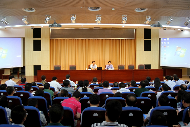 2015年6月10日下午,连云港市市委常委、纪委书记吴自斌来我校,作了题为“认清形势,坚定信心,从我做起,建设廉洁政治”的党风廉政建设和反腐败工作专题报告。报告会由校党委书记赵炳起主持。全体校领导、中层干部、各基层党组织纪检委员、涉及人、财、物等部门和单位的科级干部共200余人参加会议聆听报告。
