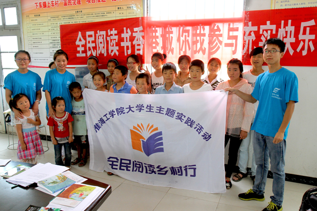 同时,我校的“全民阅读乡村行”专项社会实践团队也来到灌云县下车镇上车村,开展关爱留守儿童暑期社会实践专题活动。实践队员们通过实地宣传、讲故事、领读书报、赠送书籍、才艺培训等方式,与当地群众和留守儿童交流,了解乡村留守儿童的阅读现状,培养留守群体的阅读兴趣。