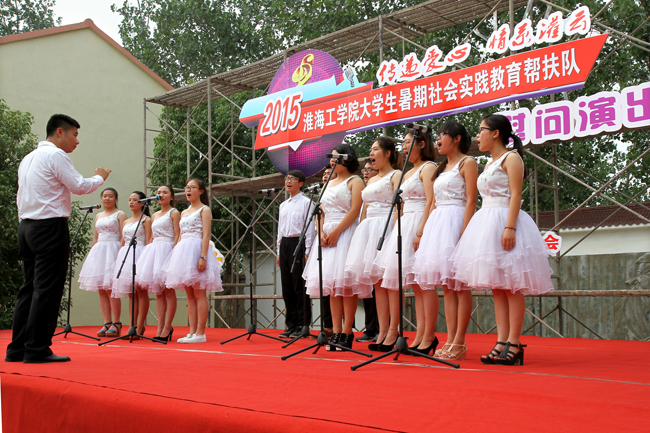 整场表演由艺术团劲舞队带来的劲舞表演拉开帷幕,极具动感的旋律和劲舞队员们热辣的舞姿在演出的开始就带起了青春洋溢的节奏。随后由郭戈老师演唱的《父亲的草原母亲的河》以其浑厚的嗓音和娴熟的演唱技巧获得了在场观众的掌声。由大学生艺术团劲舞队和国标队所带来的舞蹈,展示出了作为现代大学生所具有的青春的朝气与魅力。演出中由灌云县下车镇三位大学生村官所表演的小品《白蛇传》,尤其得到全场观众的称赞,节目由下车镇禁止燃烧秸秆开始,展开了一系列以当地为背景的表演,时不时冒出的灌云方言逗得在场的观众们都忍俊不禁,围绕着当地村民生活的表演获得了观众们的一致好评。