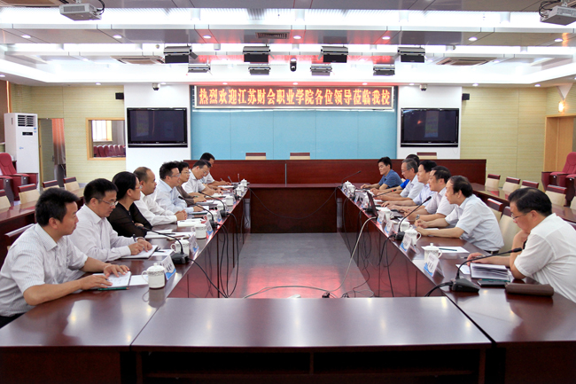 9月16日下午,江苏财会职业学院党委书记章江益、院长李梅英率领导班子成员来我校调研交流工作。校领导赵炳起、史金飞、刘永强、舒小平、杜军在会议中心东海厅会见了来宾,并座谈交流。