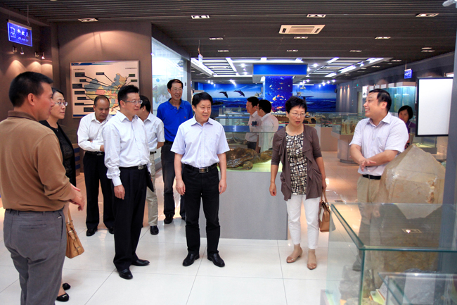 随后,章江益、李梅英一行在校领导的陪同下,参观了海洋馆和校园环境。
