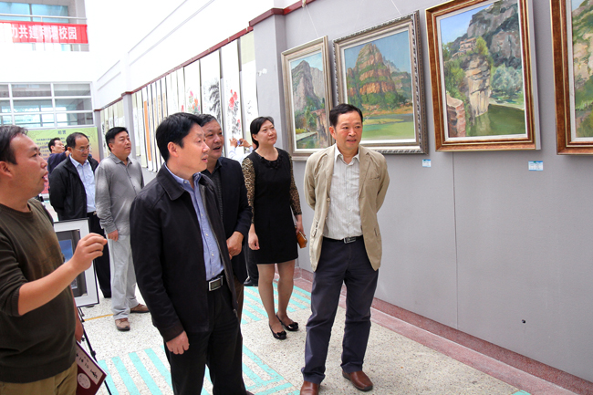 作为建校三十周年和办学五十七周年纪念庆祝活动的一部分,教职工文化艺术作品于10月20日至11月6日在艺术楼一楼展厅展出,10月20日下午举行了作品开展仪式。校党委书记赵炳起,校党委副书记、纪委书记史顺良,连云港市教育工会主席周跃峰等领导出席了本次活动,并饶有兴致地观看了参展作品。赵炳起对本次文化艺术展评活动表示肯定,他说,这次活动对丰富教职工业余文化生活,活跃校园文化都有积极的促进作用,并希望今后能多组织相关活动,进一步增强教职工凝聚力,推动和谐校园建设。