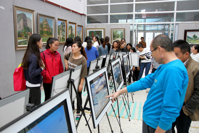 市教育工会领导、在连各大中专院校工会主席,校内各分会主席、获奖作者等一百余名师生参加了此次活动,他们都对参展作品及活动的举办给予了较高的评价。我校退休教师徐良老师作为奉献给校庆三十周年的礼物——行摄西藏,高水平的摄影作品为整个文化艺术作品展增添了不少亮点。