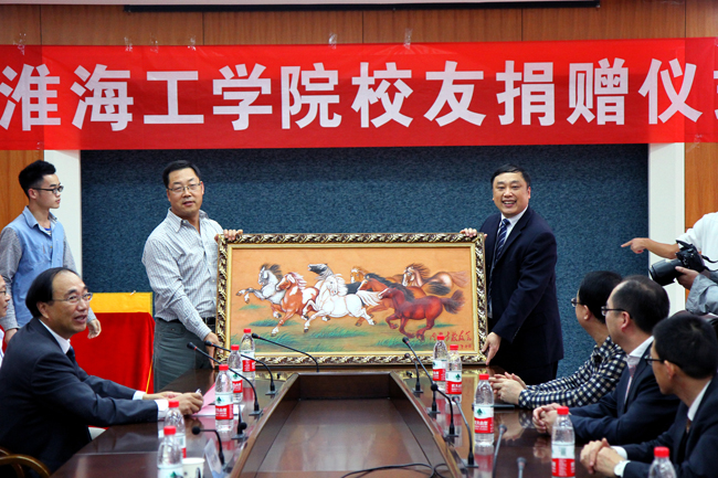 会上,校长史金飞致辞。他代表学校党委、行政及全校师生员工,对校友会和部分校友的捐赠表示诚挚的敬意和由衷的感谢。史金飞说,今年是淮海工学院建校30周年暨办学57周年,这些年来,学校的每一步发展都离不开具有高度社会责任感、心系母校发展的广大校友的支持,各位校友在各自的工作岗位上做出了突出贡献,为学校赢得了荣誉,这是学校最宝贵的资源。史金飞表示,学校将进一步加强人才队伍建设、提高学术科研水平、提升社会服务能力,培养出更多更优秀的高素质应用型人才。同时希望广大校友一如既往地关心、支持淮海工学院的建设和发展。