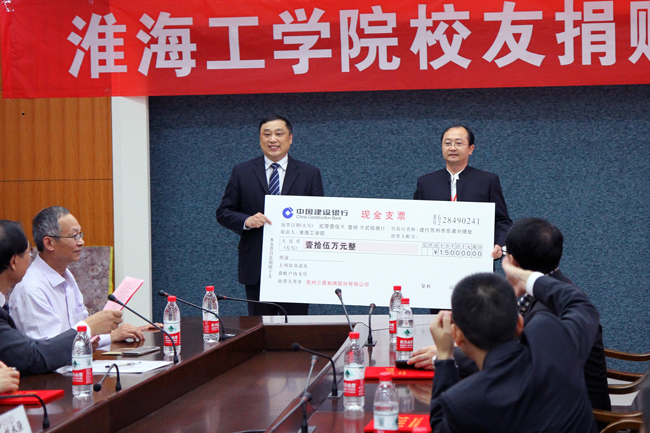 校长史金飞代表学校接受苏州校友会会长沈兴华个人捐赠的15万元专项助学基金