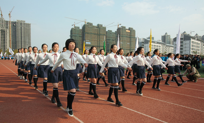 法学院代表队尽是律政俏佳人。白色的衬衫,红色的短裙,伴随着正步走,束得高高的马尾在微风中甩动,青春气息扑面而来。女孩们带有整齐划一的舞姿赢得了观众们的阵阵欢呼。身着蓝色上衣的文学院代表队以一支青春舞曲传达了积极向上的文院精神;化学工程学院摆出锥形瓶的阵势彰显了化工特色;新成立的药学院精神饱满,步履昂扬,整齐举起的药型图片得到了观众们的齐声赞叹;艺术学院队伍用红黄两扇舞出了柔和的人浪。“真是八仙过海,各显神通啊!”站在观众席上的殷同学看着走过的队伍连连感叹。