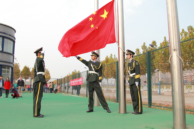 伴随着激昂的乐曲声,由各个二级学院和校其他部门人员组成的26支代表方阵依次走过主席台前。首先走过主席台的是国旗仪仗队。作为方阵先锋,他们步伐稳健,整齐有序,鲜艳的红旗在风中飘扬与一身墨绿的军装相得益彰。