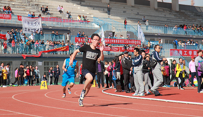 秋日午后阳光的威力依然不容小觑,但这丝毫不印象观众的热情。伴随阵阵擂鼓声,“土木加油!”的呐喊声响彻半空;“机械第一!”机械学院学生挥舞着“小手掌”,“啪啪”声伴随着呐喊声响彻运动场。“电子加油!”电子学院啦啦队也不甘示弱地加入其中。赛场已不仅仅是运动员的天下,也是观众席的比拼。阳光依旧,激情持续。