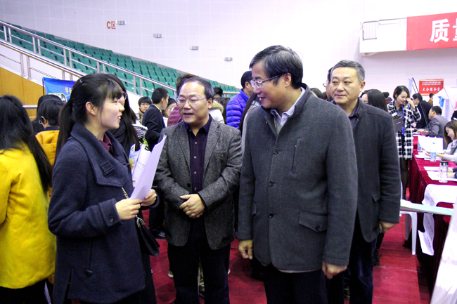 副校长王洪法、江苏省高校招生就业指导中心书记胡建平、连云港市人才服务中心副主任杨殿光、连云港市就业管理处主任孙爱宝以及学生处负责人出席了本次洽谈会,在大会现场与用人单位进行了交流。