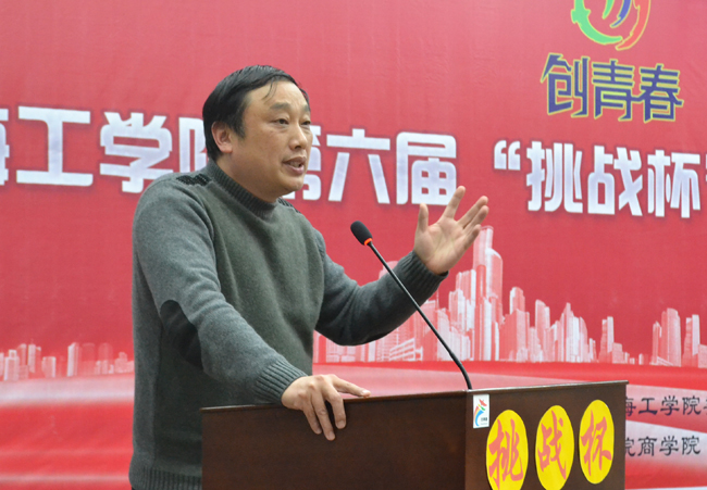 校长史金飞教授发表讲话,他首先对我校大学生创新创业所取得的成果表示赞赏。史金飞指出,“挑战杯”大学生创业计划大赛是我校学生课外科技活动中的一项重要赛事,在服务学校培养创新型人才培养战略中发挥了重要作用,希望有更多同学参与到这项赛事中来,将所学理论知识与社会实际相结合,在充满挑战的创新创业活动中,努力培养创新意识,提高创新能力。