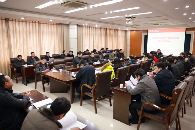 为进一步强化我校基层党组织书记的履职尽责意识,扎实推进党的基层组织建设,1月4日下午,学校党委在文渊楼会议室召开会议,对基层党组织书记2015年度履行党建工作主体责任进行述职评议。校领导赵炳起、史金飞、宁晓明、史顺良,党委各职能部门负责人,以及随机抽取的党代会代表作为评议员听取了述职报告,并对24个基层党组织书记履职尽责情况进行了评议。