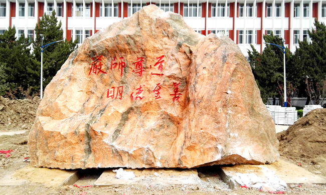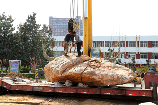 4月5日上午,由淮海工学院校友向母校捐赠的“校训石”在通灌校区顺利安装。校党委副书记、副校长宁晓明,校友代表王建强及分校区管委会领导现场指导安装。