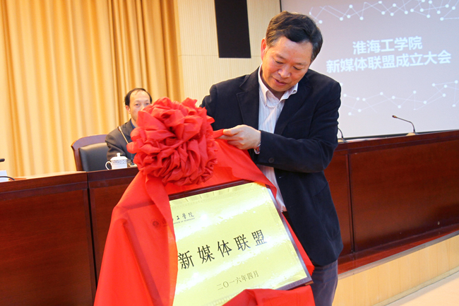史顺良为新媒体联盟揭牌并讲话。他代表学校党政向淮海工学院新媒体联盟的成立表示祝贺。史顺良指出,当前,以微博、微信为代表的移动互联网新媒体平台迅猛发展,已成为广大师生获取和传播信息的主要渠道。截止今年3月份,学校近百个单位、学生组织开通了微博、微信等新媒体平台,新媒体的发展已经呈现“百花齐放”的良好态势。在看到我校新媒体平台蓬勃发展的同时,我们也要清醒地认识到学校新媒体发展存在的问题:各新媒体平台之间缺乏互动交流,大部分处于“单兵突击”的状态;学校新媒体环境相对复杂,内容良莠不齐,部分新媒体平台为吸引关注度,在信息发布过程中存在内容不真实、不恰当等问题,这些问题的出现都迫切需要进一步加强校内新媒体平台的学习培训、互动交流和规范管理。