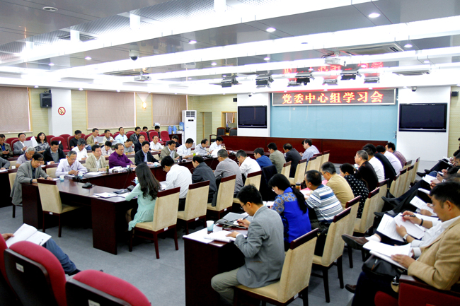 5月18日上午,学校党委中心组就党委意识形态工作责任制有关问题进行了集中学习。全体校领导、“两委”委员和各单位、各部门负责人参加了学习会。校党委书记赵炳起主持会议并讲话。