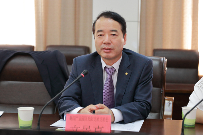 史金飞向丽水产业园区的客人们介绍了我校的基本情况,并着重介绍了我校在化工、制药等相关领域建设的成绩。文景真社长也简单介绍了丽水产业园区的情况。随行的韩国全南大学经济学教授朴福在还表示,连云港市与丽水市有很多相似之处,未来在经济方面可以创造一些合作的机会。