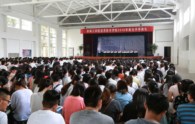 9月4日下午,应用技术学院2016年专转本新生开学典礼在宋跳校区大礼堂隆重举行。校长史金飞,党委副书记、副校长宁晓明,副校长王洪法,校学生处负责人及该院全体领导班子出席典礼并在主席台就坐。全体专转本新生、学生辅导员和各科室负责人参加典礼。典礼由该院党委书记周清华主持。