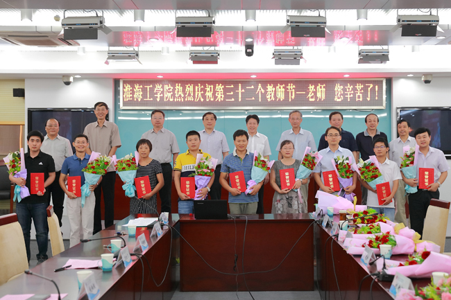 校领导为2016年度江苏省先进集体和淮海工学院“师德建设月”活动先进单位颁奖