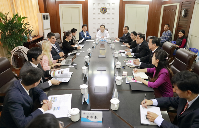史金飞首先介绍了学校历史与发展的基本情况,并详细介绍学校开设的几个特色专业。史金飞指出,目前学校正在全力打造海洋品牌,朝着创建江苏海洋大学的目标不断努力。史金飞表示,学校高度重视与国内外高校合作交流,常年鼓励师生积极地“走出去”,通过到其他高校的访问学习,不断提高我校师生的专业能力和学习能力。