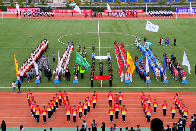 法学院、文学院入场方阵动感的音乐加上劲爆的舞蹈、艺术学院的扇形变换、应用技术学院用38个校徽图案组成一个奔跑的人……整齐划一的动作,富有创意的方阵造型,引得台上观众掌声、喝彩声、鼓声响成一片,经久不息。