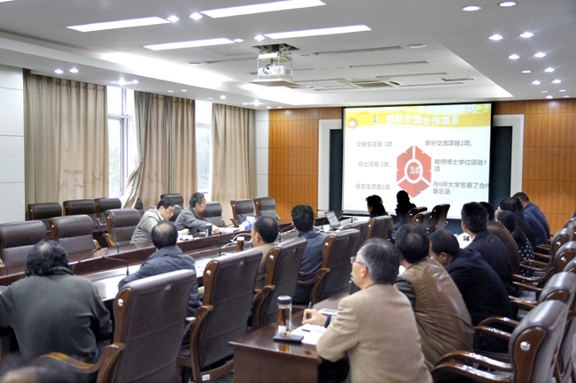 会上,国际交流与合作处处长徐岚从国际交流合作项目、来华留学教育、学生海外修学规模、出国团组及外事接待、规范意识与服务意识、存在问题及建议这六个方面,详细介绍了我校国际交流与合作处目前的主要职能以及国际交流与合作处成立以来的工作成果。