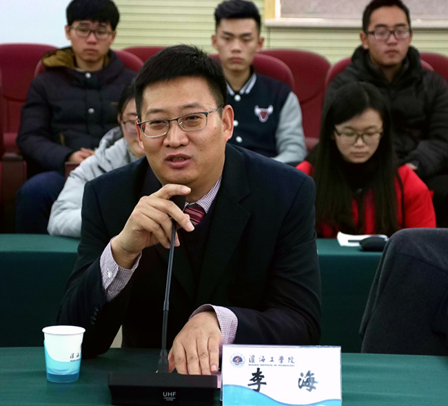 校友李海1994年至1998年在我校中文系汉语言文学专业就读,曾担任班级和院系学生会主要干部。他在讲话中深情回顾了自己当年在母校的学习和工作经历,由衷地感谢母校和文学院老师对自己的培养,寄语学弟学妹珍惜大学美好时光,全面锻炼自己成人成才。他衷心祝福母校早日建成江苏海洋大学,表示今后将为母校建设做出更大贡献。