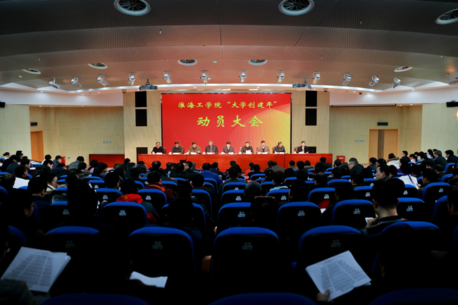 2月25日上午,“大学创建年”动员大会在会议中心黄海厅隆重召开,全体校领导出席了会议。会议由校长史金飞主持。全校中层干部、各二级学院系主任,各单位各部门科室负责人参加了会议。