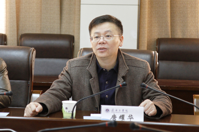 史金飞对唐耀华一行的到来表示欢迎,并围绕江苏海洋大学的创建,向客人介绍了近年来我校在学科建设、教学工作、人才队伍建设、品牌专业建设等方面的情况。