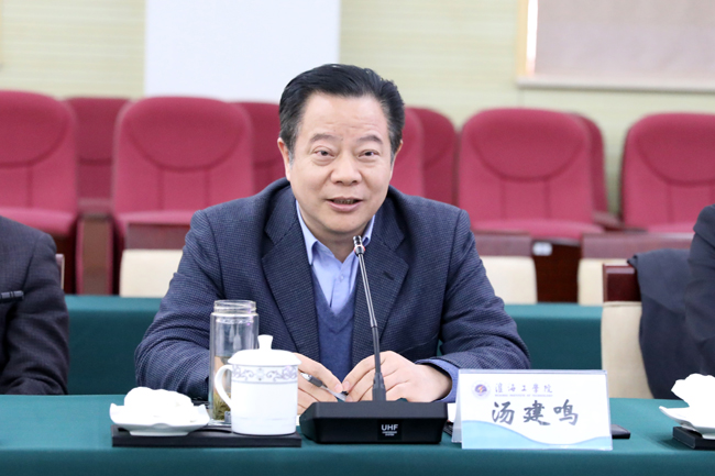 会上,汤建鸣谈到了与我校的渊源,并为我校近年来的发展点赞。他说,淮海工学院在创建江苏海洋大学方面思路明确,行动务实,举措得力。创建江苏海洋大学,不仅是淮海工学院的梦想,同时也是省海洋与渔业局的梦想。作为职能部门,省海洋与渔业局一直积极推动江苏海洋大学创建,多次将创建工作写入相关规划。他表示,将积极为我校争取省部共建,在科研项目合作方面加强对接和沟通,给予我校科研用海等方面的支持,并预祝我校海洋大学之梦早日实现。