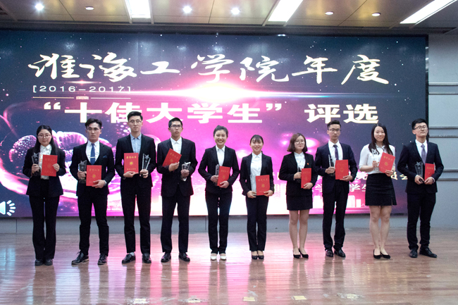 经过网络投票、终审答辩等环节,最终评定产生了淮海工学院2016-2017年度“十佳大学生”。期望通过此项活动的举办,让每位淮海学子以他们为榜样,积极进取,为自己的年轻的生命增添光彩!