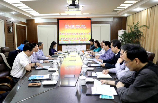 5月23日下午,淮阴师范学院校长朱林生、副校长施军、副校长周军一行来我校调研交流。校领导赵炳起、刘永强、史顺良在行政楼二楼会议室会见了来宾。宾主双方就国际化办学和依法办学、优化大学治理工作进行了深入探讨和交流。