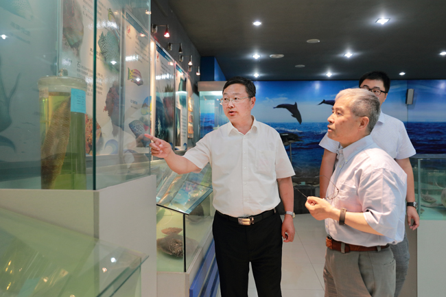 讲座结束后,宁晓明陪同吴彦伯博士一行参观了我校海洋馆,并来到我校主楼顶层俯瞰了校园,介绍了我校校园概况以及发展规划。