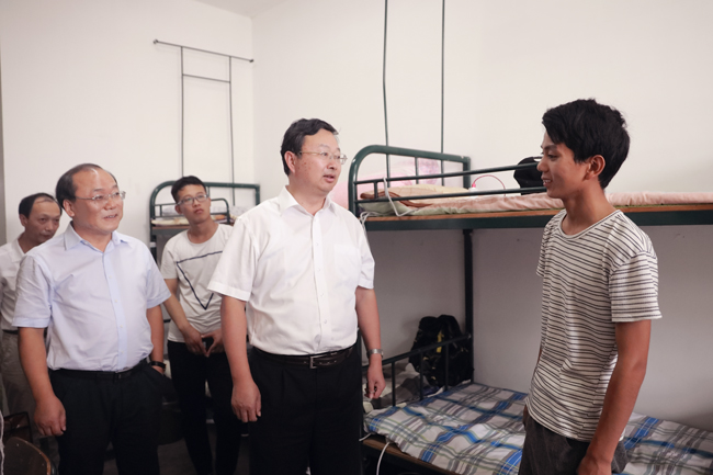 为了做好新生入学各项工作,学校学生工作部门特意制作了大一新生大数据,里面既有生源省市分布情况,还有新生最高身高、最小年龄、家庭经济情况等相关细微数据。校领导一行先后来到通灌校区和苍梧校区学生宿舍区,根据大数据提供的情况,分类慰问了家庭经济困难学生、离家最远新生、年龄最小学生、“史上最高”学生,并专门走访了开学前为学校发展建言献策的新生家长。