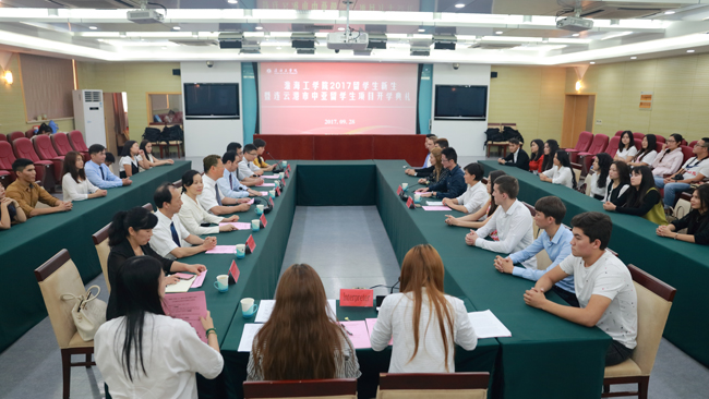 首先,与会人员一同观看了淮海工学院宣传片,留学生们得以进一步了解我校的历史及自然、人文环境。