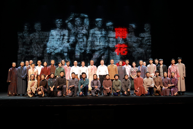 在党的十九大即将召开之际,10月9日晚,大型史诗话剧《雨花台》高校巡演淮海工学院专场在市文化艺术中心大剧院开幕,为我校师生上了一堂特殊而生动的思想政治课。全体校领导、中层干部、马克思主义学院教师、辅导员、机关科级干部、学生代表等一千余人观看了演出。