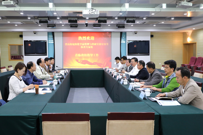 根据《省教育厅办公室关于开展高校危险化学品管理与科研实验室安全检查工作的通知》(苏教办科函[2017]18号)要求,10月11日下午,以江苏省高校科研管理研究会理事长、原南京医科大学副校长张竹繁为组长的专家组一行5人莅临我校,检查危险化学品管理与科研实验室安全工作。安全检查工作汇报会在会议中心东海厅举行。校长宁晓明、副校长陈先宏出席会议,科学技术与产业处、保卫处、设备与实验室管理处及相关学院负责人参加会议。会议由宁晓明主持。