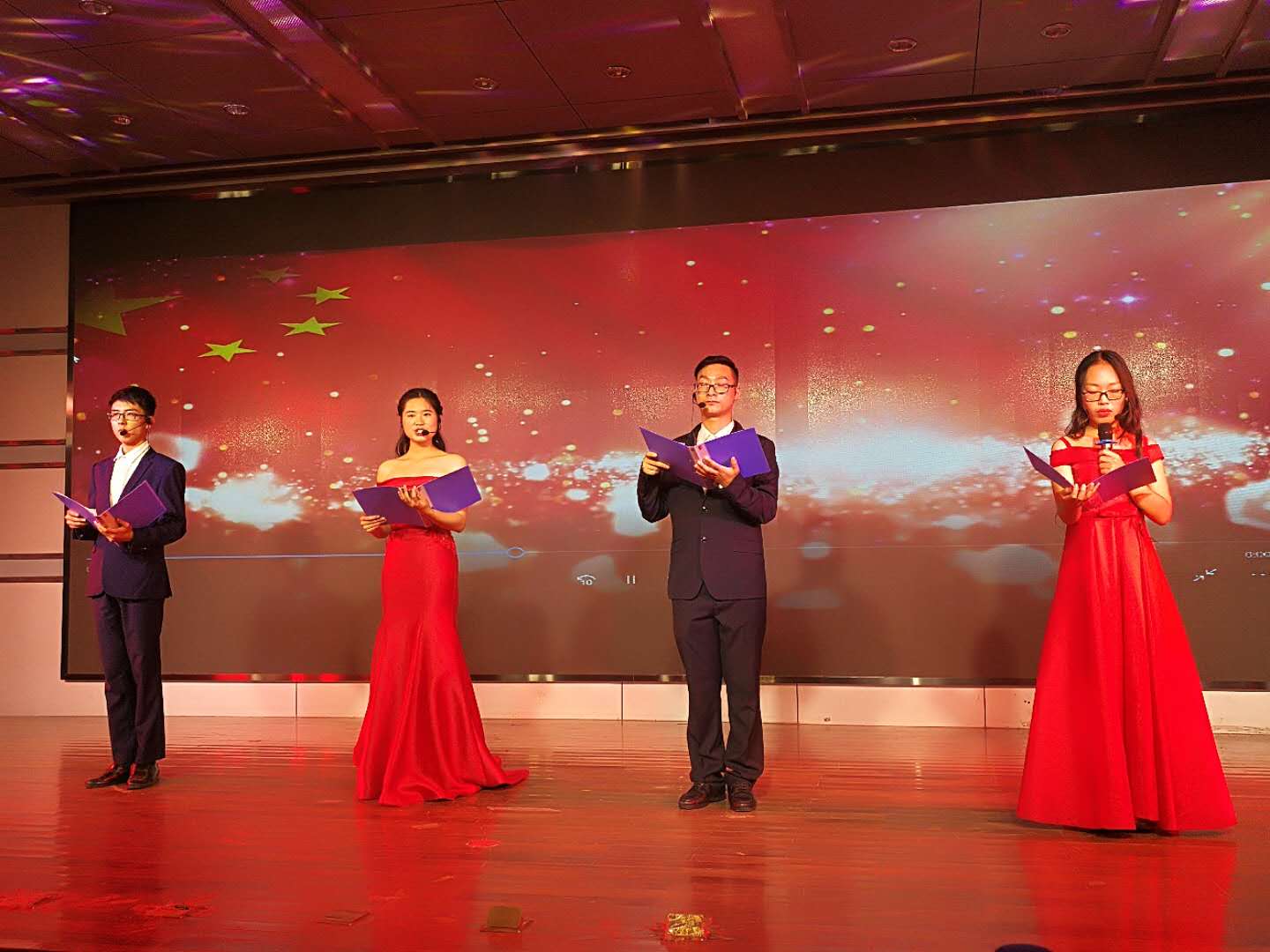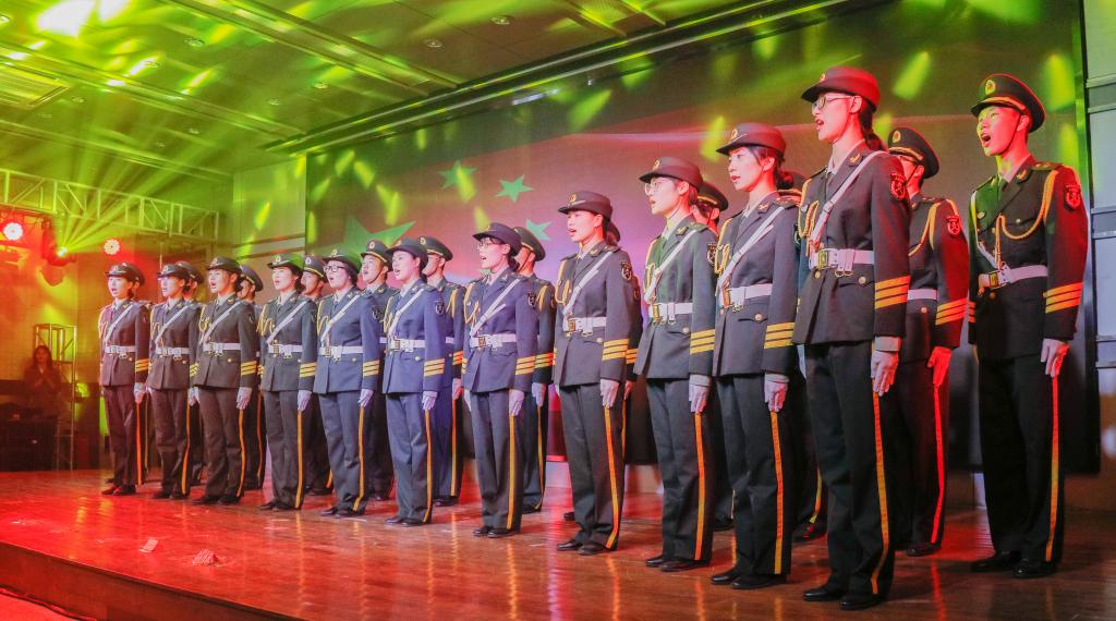 当晚,师生们在艺术楼为大家呈现了一台精彩的联欢晚会。晚会以赠语开场,老队员们将他们对母校、对国旗队炙热的情感,通过视频传递给在场的每一位来宾。摇滚乐队带来的《曾经的你》,激起老队员的无限回忆;小品《队友会》让大家在笑声中感受到既严谨又活泼的国旗队氛围;队列表演,嘹亮的《强军战歌》、《解放军之歌》,让全场师生自发地以掌声助兴、齐声共和;老师们的合唱,引来同学们阵阵喝彩;《我的国旗,我的队》诗朗诵更是将整个晚会推向高潮,全体人员在满屏的红旗下郑重地重温入队誓词。联欢会上,师生们一起,唱起来、跳起来,欢歌笑语,热情高涨,感受着 “团结向上、奉献爱国”的国旗队精神带给大家的无限震憾和激情。