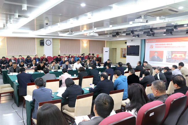 11月2日下午,学校党委在会议中心东海厅召开会议,就全校学习宣传贯彻党的十九大精神工作进行部署。校党委书记赵炳起主持会议并发表讲话。全体校领导、全体中层正职参加会议。
