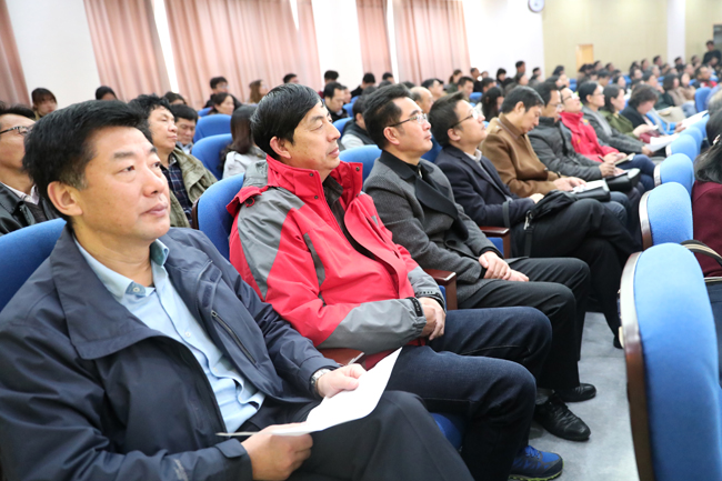赵炳起在主持报告会时说,十九大在党的历史上是具有里程碑意义的一次大会,深入学习、宣传、贯彻党的十九大精神是全党全国当前首要的政治任务。对高等教育发展,十九大报告提出要加快一流大学和一流学科建设,实现高等教育内涵式发展。这些内容体现了党和国家对教育事业的高度重视。今年年初,我校确定2017年为“大学创建年”。前几天,市委调整了江苏海洋大学创建工作领导小组,全面领导创建工作,同时成立了大学申报和校区规划建设工作组,推动核心任务的完成。创建江苏海洋大学,凝聚着市委市政府和港城人民对我们的期望,也凝聚着几代淮工人的热切期盼,是当前学校发展的重要任务,也是我们学习贯彻党的十九大精神的重要落脚点。