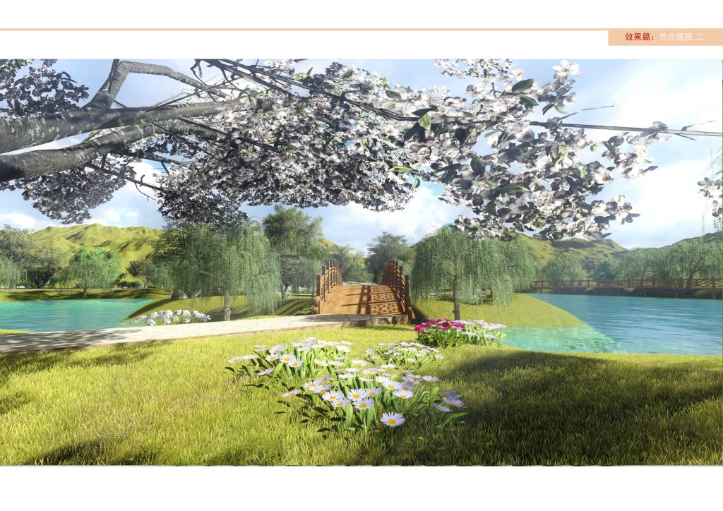 该工程邀请苏州立诚建筑设计有限公司进行景观设计,设计方案在湖面沿岸边和湖内主岛分别设闭合景观环路、景观亭,亭前设有景观台,湖域内局部设有汀步,沿双幅路北侧(即北湖南岸)从东到西设观景栈桥,另设三座反拱桥分别链接驳岸与湖内各岛,总造价250万元左右。