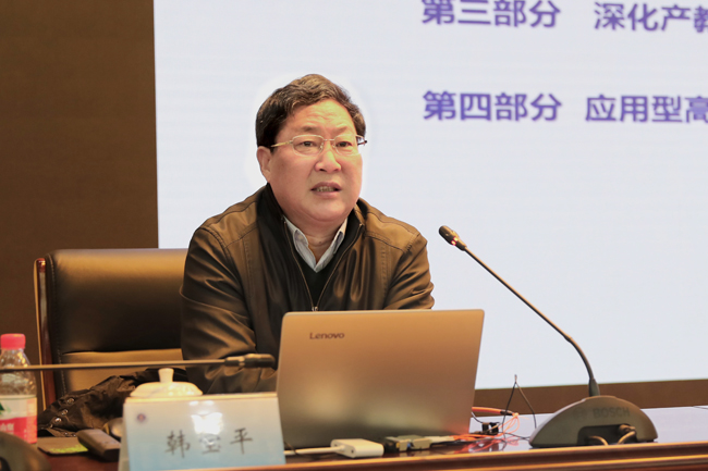 报告从国家产教融合发展工程简介、深刻理解国家实施产教融合发展工程的意义、深化产教融合的四种新思维、产教融合示范项目的典型案例等四方面诠释了如何大力推进产教融合工程及建设特色鲜明的应用型高校。韩宝平指出,眼界决定未来的发展高度,高等学校走开放融合的发展道路,是历史经验、全球趋势和科技进步加速的要求。学校人才培养,必须了解我们学生的毕业去向,努力培养社会需要的人才。作为应用型高校,意味着要以需求为导向,只有培养了社会需要的人才,大学才有存在的价值。韩宝平还提出推动产教融合发展需要的四种新思维——撬动思维、融合思维、创新思维、协同思维,走他人没有走过的路,错位发展。