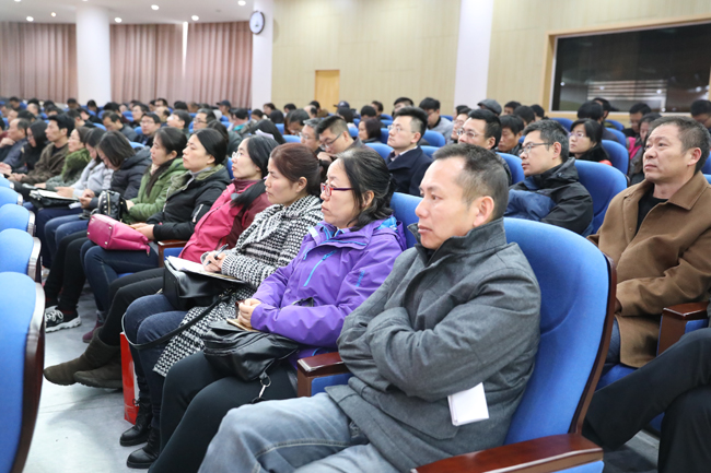 各二级学院正副书记、正副院长、正副系主任、正副实验室主任、专业负责人、教师代表,教务处、教学质量管理处、设备与实验室管理处、发展规划处、研究生处全体人员聆听了报告。