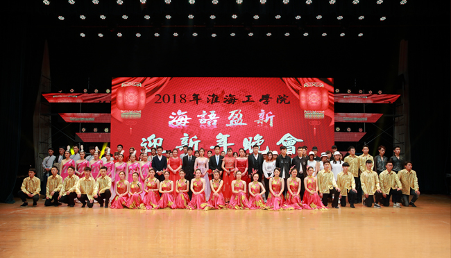 12月26日晚,“海语盈新”迎新年晚会在苍梧校区大礼堂举行,副校长王洪法、陈先宏,江苏省高校优秀辅导员宣讲团第二组成员以及全校1300余名师生观看了晚会。