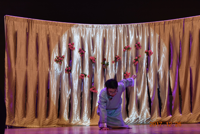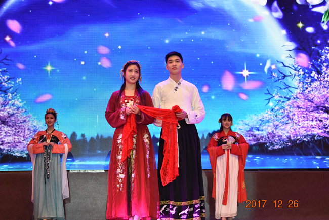 在一段简短的迎新年祝福视频之后,演出正式开始。艺术团炫舞海浪劲舞队为观众带来了饱含激情和青春风采的《征途》,充满力量和斗志的舞蹈预示着我们即将踏上不断奋斗和砥砺前行的新一年;海之风器乐队合奏的《happy poker》节奏动感,充满新年的喜庆;独唱《当我想你的时候》、民舞《紫竹情》、小合唱《彩虹》紧凑有序展现,将观众带入清新雅致的新年氛围中;海之影模特队的国风走秀《苏幕遮》给观众带来了一场“汉服、昆剧、水乡、江南”的视觉盛宴,将晚会推上了一个高潮。