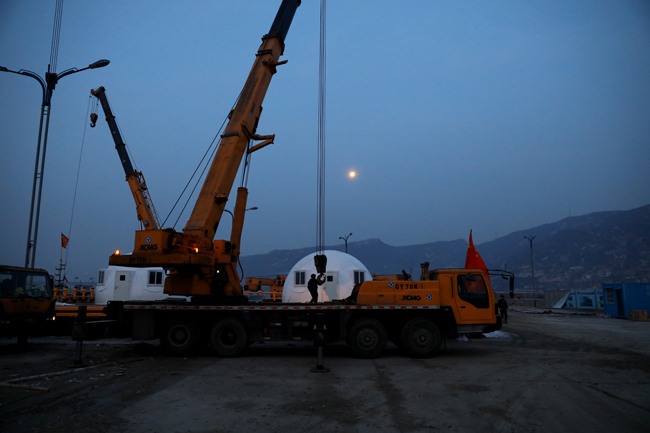 晨曦初露,工人紧张作业
