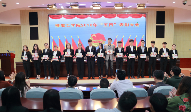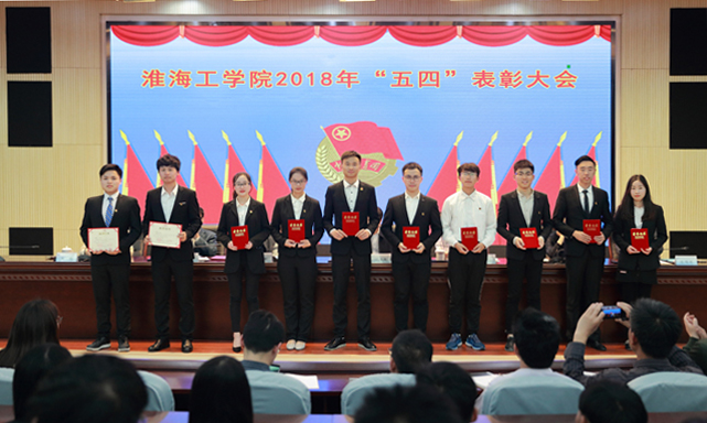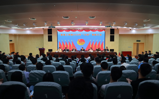 5月4日下午,我校2018年五四表彰大会在会议中心黄海厅举行。校党委书记赵炳起、副校长金芙蓉出席会议,党委组织部、党委宣传部、教务处、学生工作处和团委等部门负责人,各二级学院党委副书记、分团委书记,获奖代表及各二级学院300余名团员青年代表参加了大会。