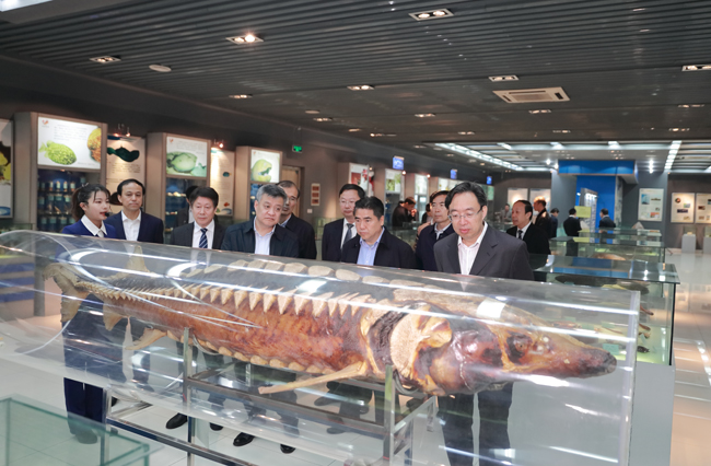 王江副省长一行来到学校海洋馆。在“小海鸥”学生讲解员的引导下,王江副省长一行饶有兴趣地在各种海洋生物标本前驻足观看,不时停下脚步与工作人员进行交流。王江副省长对我校依托海洋馆,普及海洋知识、培育海洋文化的做法点头称赞。