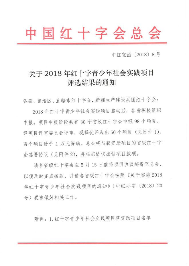 近日,中国红十字总会发布《关于2018年红十字青少年社会实践项目评选结果的通知》,我校艺术学院申报的“应急救护文化乡村行”获准立项。该项目是我校承担的第一个国家级红十字社会实践项目,也是连云港市承担的第一个国家级红十字社会实践项目。